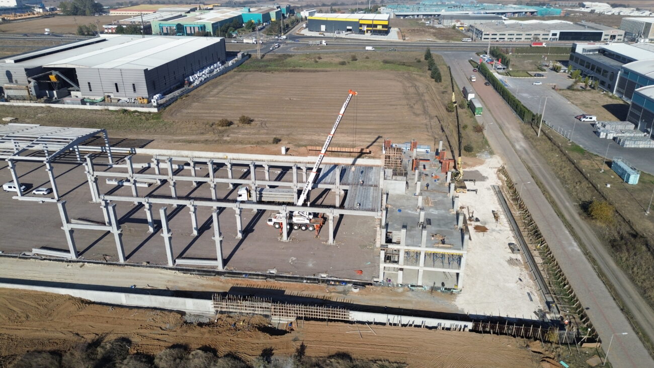 Proje sahasında prefabrike kolonların alt yapı imalatları tamamlandı, montaja hazırlık süreci başladı. Ayrıca, idari binanın alt yapısı tamamlanarak temel betonu başarıyla döküldü. Yapının taşıyıcı sistemi için kritik olan bu aşama, projenin hızla ilerlemesini sağladı.