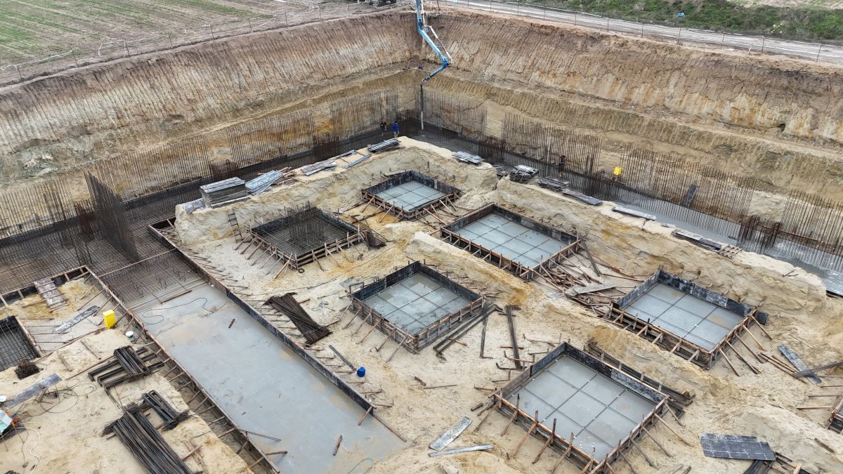Projenin temel imalatları, zemin etüt raporları ve statik projeler doğrultusunda kontrollü şekilde yürütülmektedir. Radye temel ve münferit temel bölgelerinde kalıp, donatı ve beton döküm çalışmaları tamamlanmış; perde ve temel bağlantı imalatları eş zamanlı olarak ilerletilmiştir. Şantiye sahası, iş güvenliği ve kalite standartlarına uygun biçimde düzenlenerek üstyapı imalatlarına hazır hale getirilmektedir.
