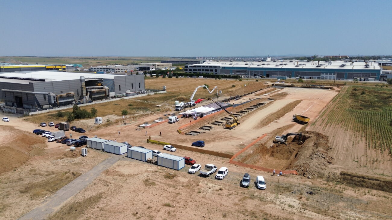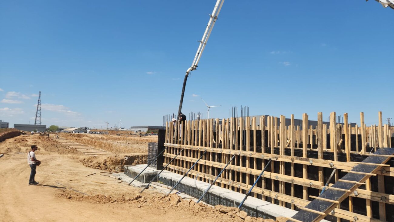 Proje sahasında prefabrike kolonların alt yapı imalatları tamamlandı, montaja hazırlık süreci başladı. Ayrıca, idari binanın alt yapısı tamamlanarak temel betonu başarıyla döküldü. Yapının taşıyıcı sistemi için kritik olan bu aşama, projenin hızla ilerlemesini sağladı.