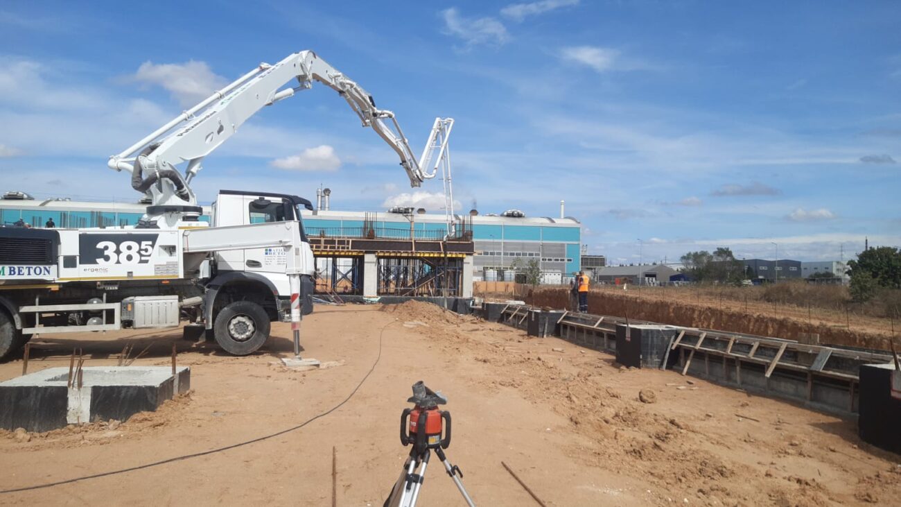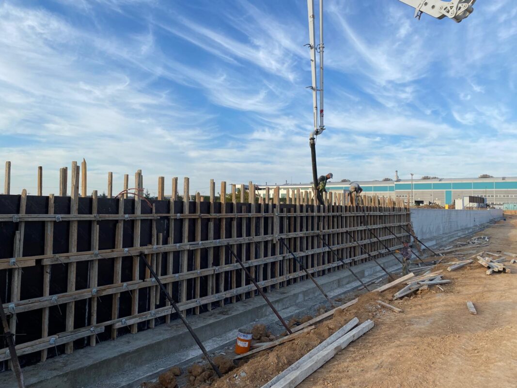 Bu ay, idari binanın zemin kat döşeme betonları başarıyla tamamlanırken, aynı zamanda fabrika çevresinde bahçe perde duvarlarının imalatına başlandı. Altyapı ve üstyapı süreçlerinin koordineli ilerlemesiyle proje planlandığı şekilde devam etmektedir.