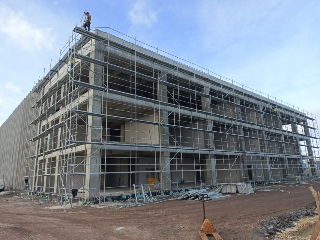 Bu ay itibarıyla idari binanın cephe kaplama çalışmaları başarıyla tamamlandı. Teras çatı izolasyonu uygulanarak yapının iklim koşullarına karşı dayanıklılığı artırıldı. Zemin kat zemin betonu ile ara kat topping betonları dökülerek yapısal bütünlük sağlandı. Aynı zamanda mekanik ve elektrik tesisat çalışmaları planlanan takvime uygun olarak devam ediyor.